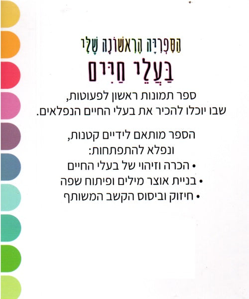 A delightful first picture book in Hebrew for toddlers, introducing a variety of wonderful animals.