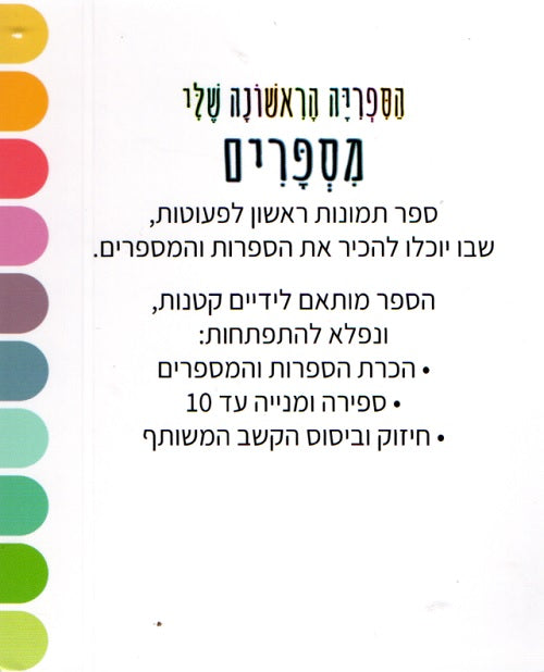 A delightful first picture book in Hebrew for toddlers, introducing numbers and numerals.